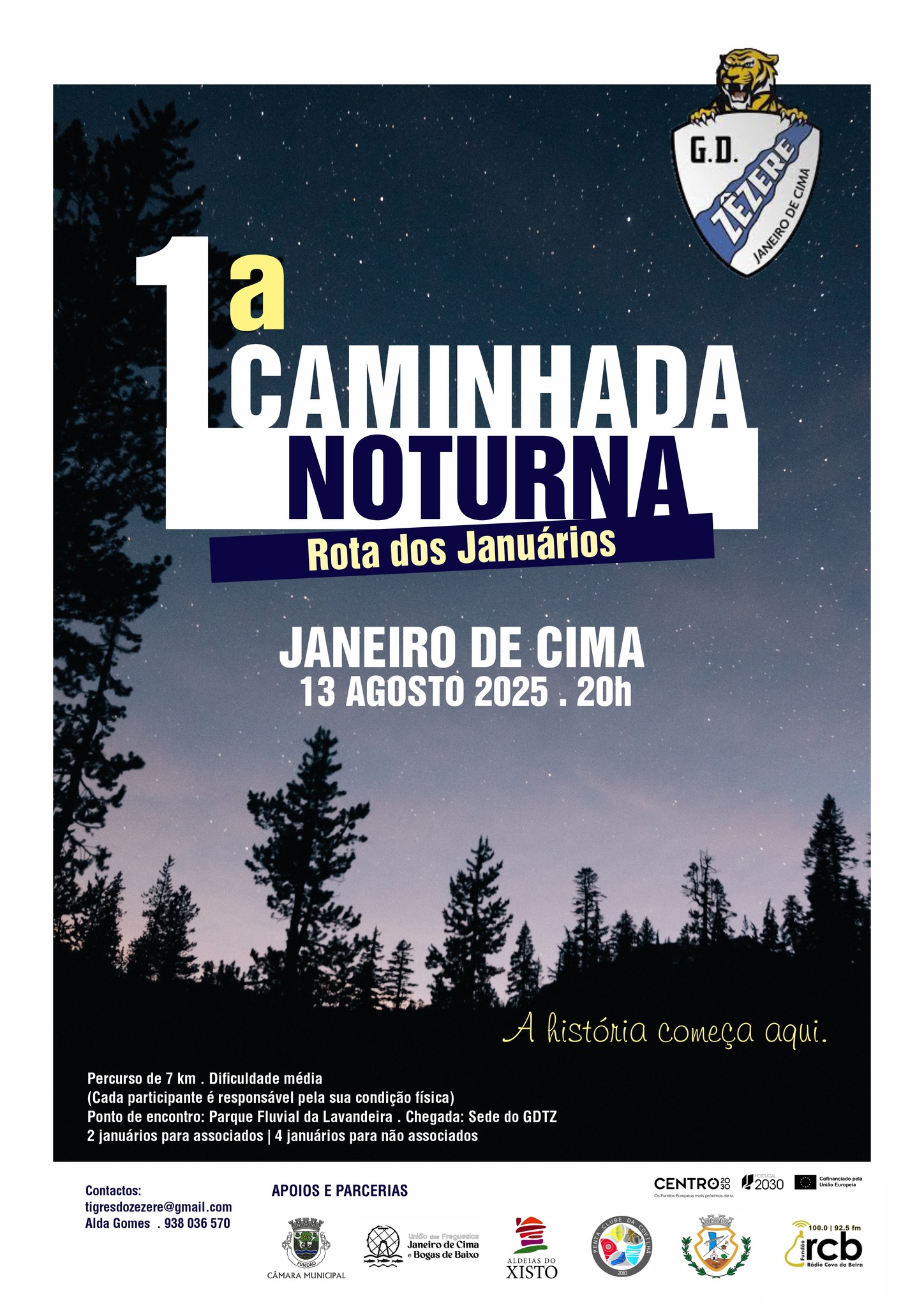 On August 13th, all roads lead to Janeiro! The Grupo Desportivo Tigres do Zêzere is back with another edition of its monthly hiking series — this time with a very special proposal: a Night Hike that invites you to explore history, nature, and local heritage through the “Rota dos Januários”.