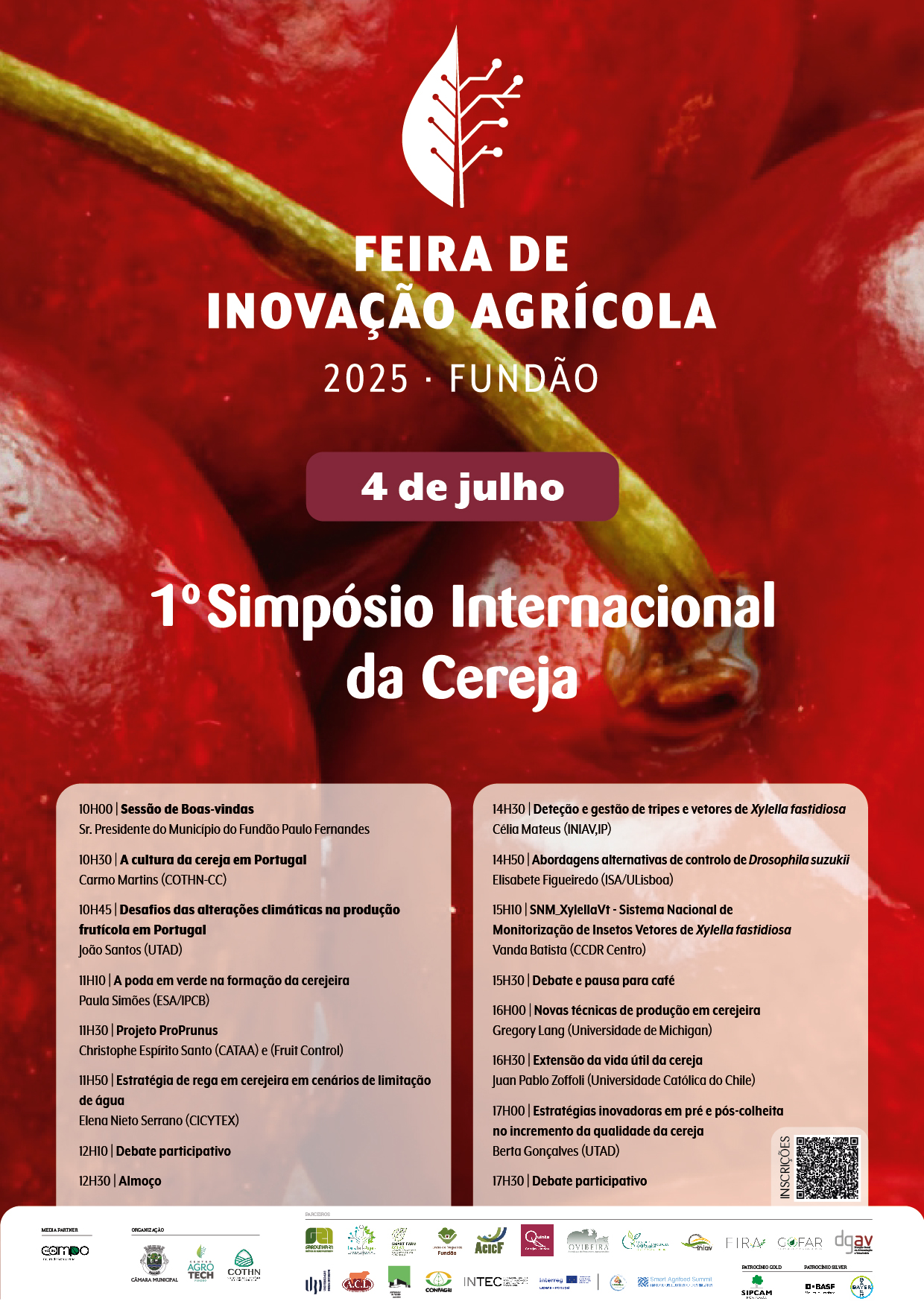 As part of the 4th Edition of the Fundão Agricultural Innovation Fair, the 1st International Cherry Symposium will take place on July 4, featuring both national and international speakers who are experts in cherry cultivation.