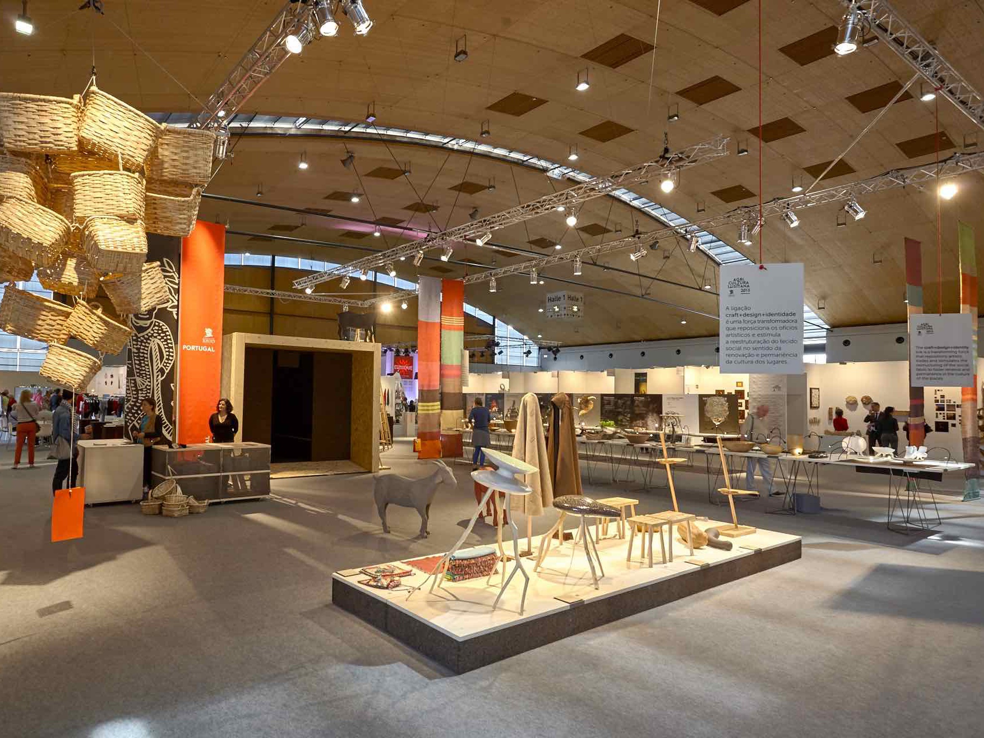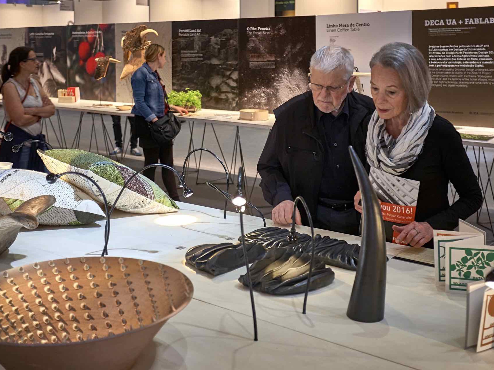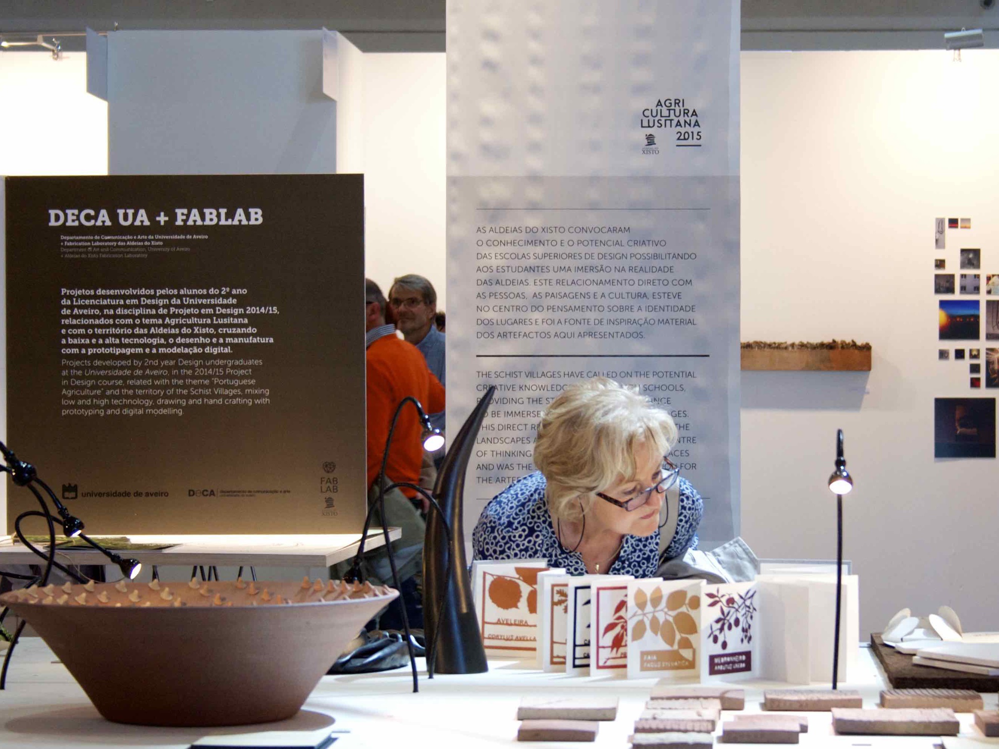 The Agricultura Lusitana exhibition and what it represents in terms of its ability to establish links with these international audiences, and which will be on show until 17 February 2016 at the AU, has already represented Portugal at the EUNIQUE 2015 in Germany, established links in Paris during the International Cultural Heritage Show, and consolidated Portugal's representation at the World Craft Council. The importance given by the Embassy of Portugal in Germany, AICEP, CCDRC and TCP, entities all present at the inauguration of EUNIQUE 2015, was unequivocal and demonstrative of the recognition of the potential of this strategy for the development and affirmation of the country. The Agricultura Lusitana project counted with the participation of more than 150 people, including artisans, designers, teachers and students from 9 national design universities, specialists from different areas and inhabitants who, for one year, generated arguments to idealize and produce goods and services significant of our rural identity and culture.