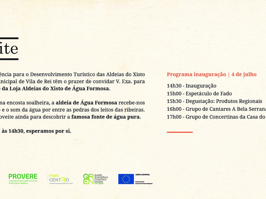 Come and see the inauguration of the Aldeias do Xisto Shop and also take the opportunity to discover the famous source of pure water.