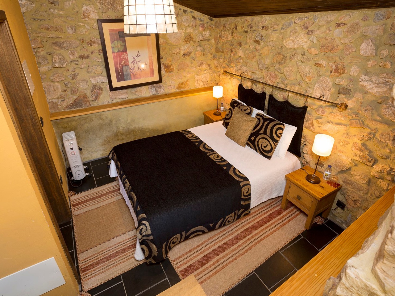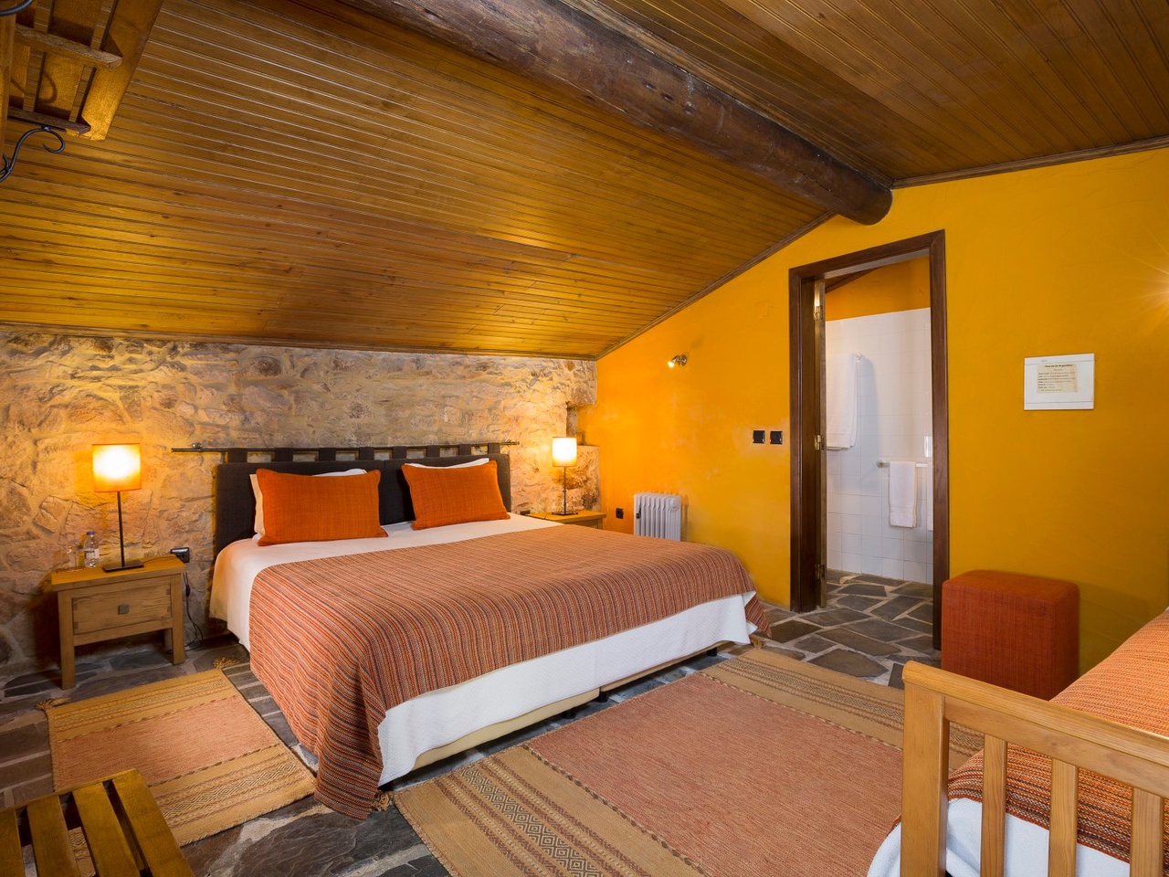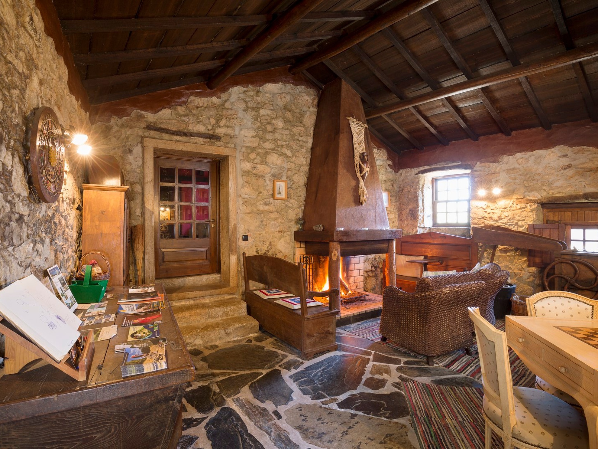 The house offers six double rooms and one suite, which are all heated with a private bathroom, a lounge, dining room and interior patio. The old corn mill in reception reminds us of day-to-day life in olden times.