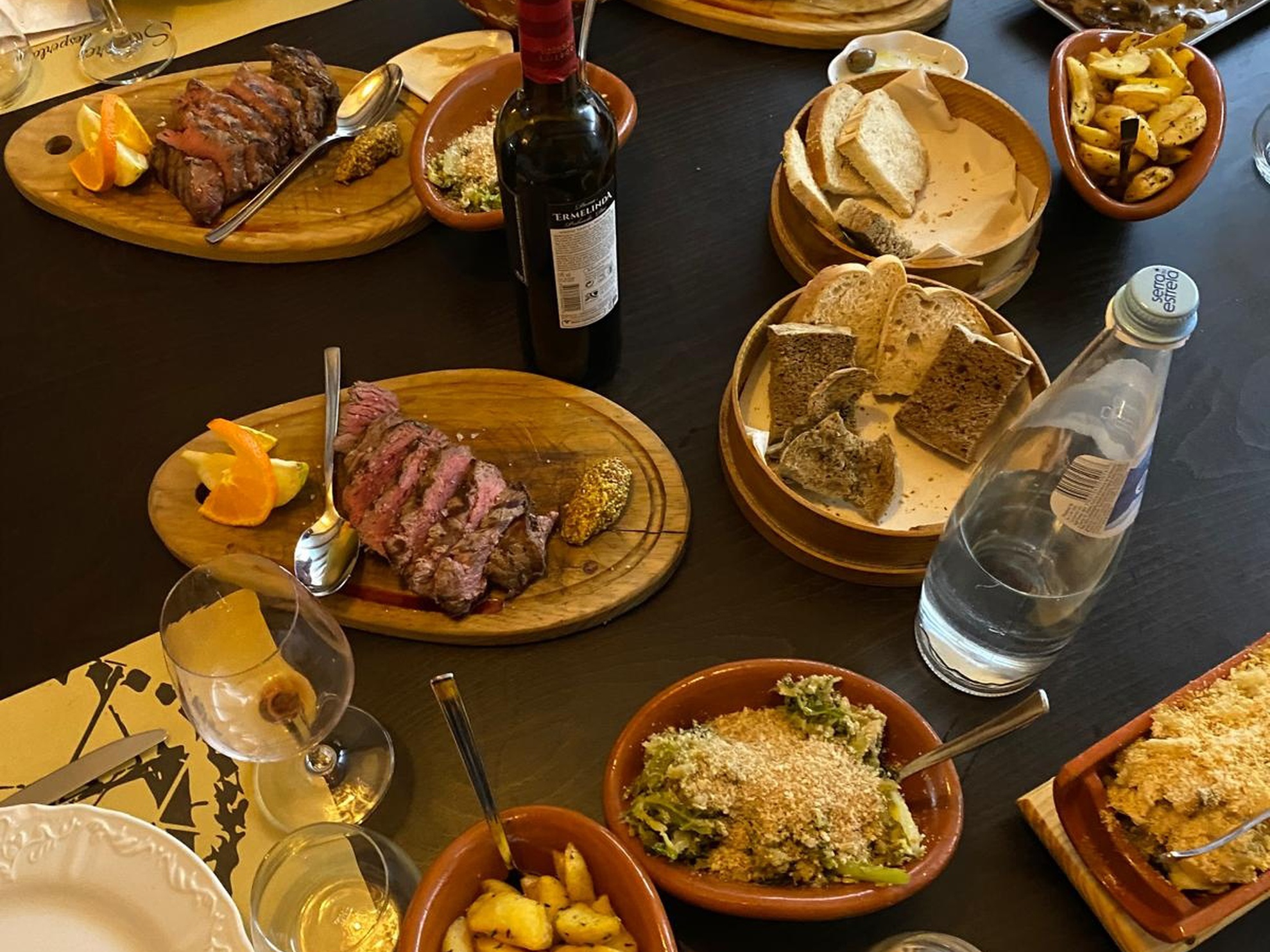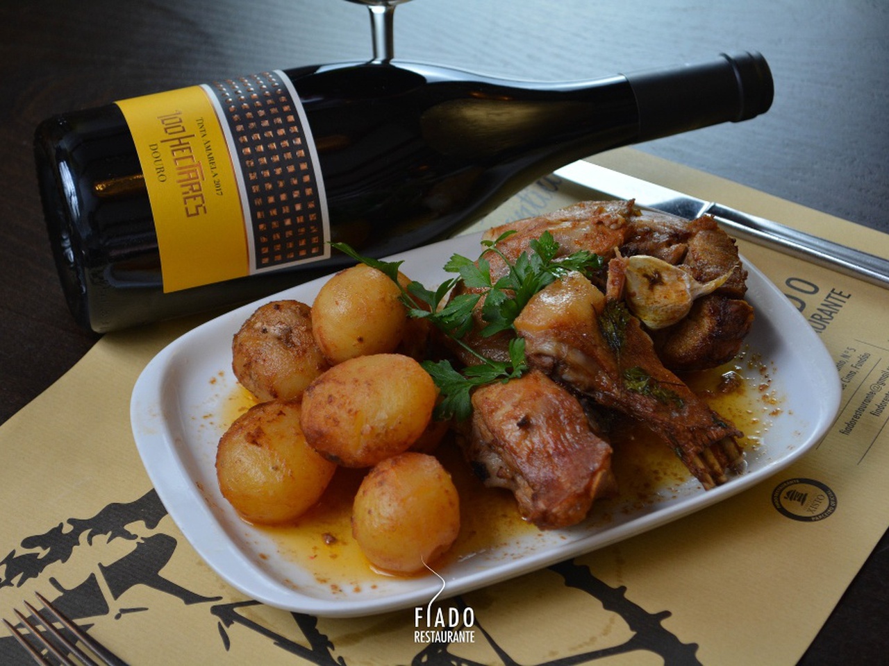 The cuisine is authentically Portuguese, paying tribute to traditional and regional dishes, with highlights such as wood-fired roast goat, maranhos (a traditional meat-stuffed dish), codfish with cornbread crust, and octopus “à lagareiro”. All excellent choices for those who appreciate a well-prepared table. For dessert, the traditional tigelada is a must.