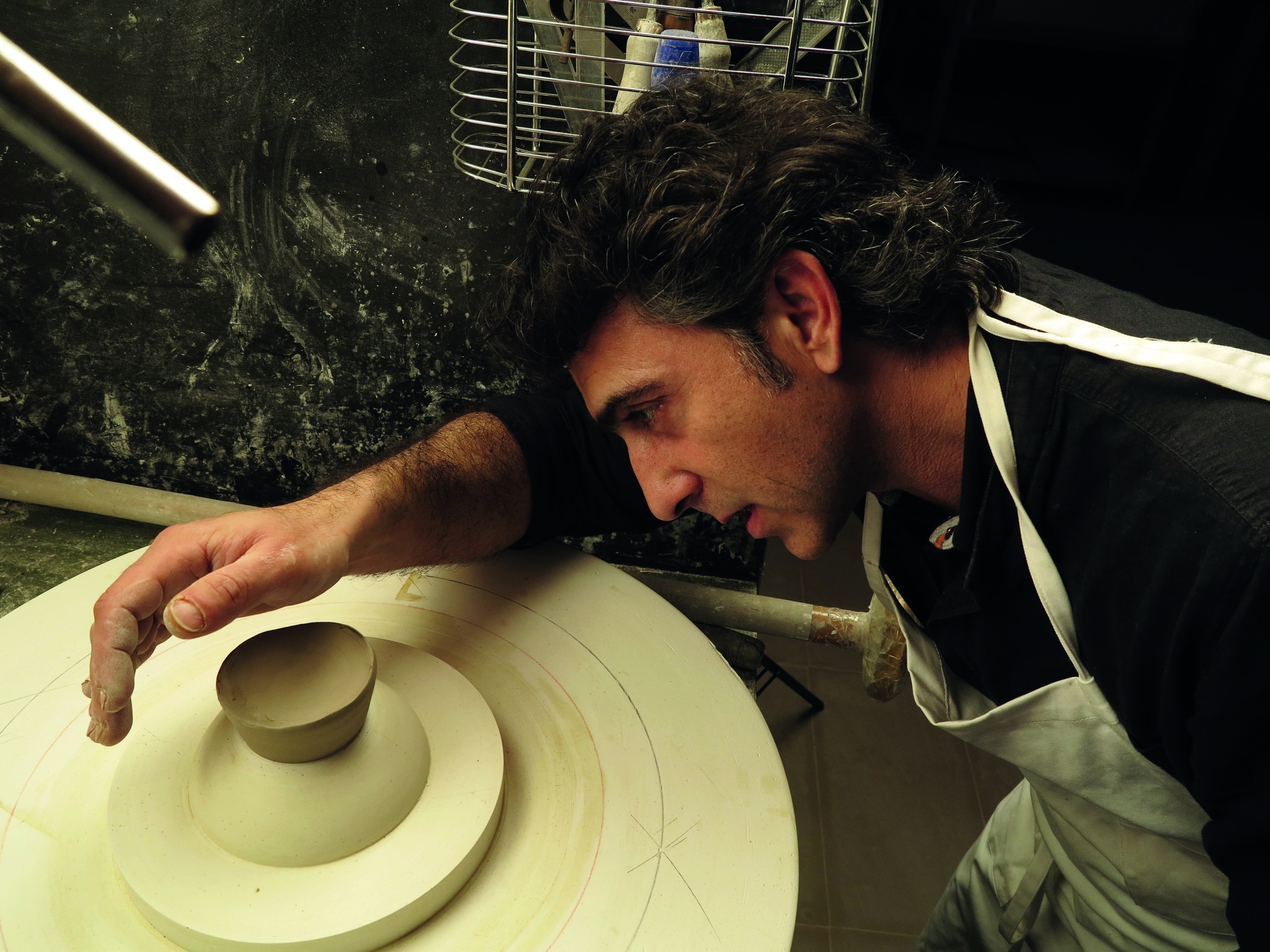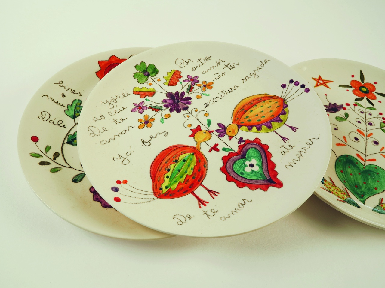 Projecto A2 is Cristina Vilarinho and Alberto Azevedo’s workshop, where the two artisan-designers express their way of seeing, feeling and relating to the world around them through ceramics. Versatility is one of the most compelling characteristics of this studio. It embraces: design as a conceptual discipline that precedes the execution of the objects; contemporary and classic tiling; modelling and pottery in various materials, such as porcelain and stoneware; ceramic murals; and even illustration and serigraphy. For Água Musa, Project A2 created the collection “Isto Não é um Fóssil, Ainda” (“This is Not a Fossil... Yet”). For the "Agricultura Lusitana” exhibition, they chose the pieces "Alqueire de Luz” (“A Bushel of Light”) and "As Mãos e os Frutos” (“Hands and Fruit”).