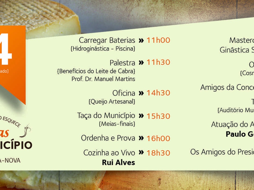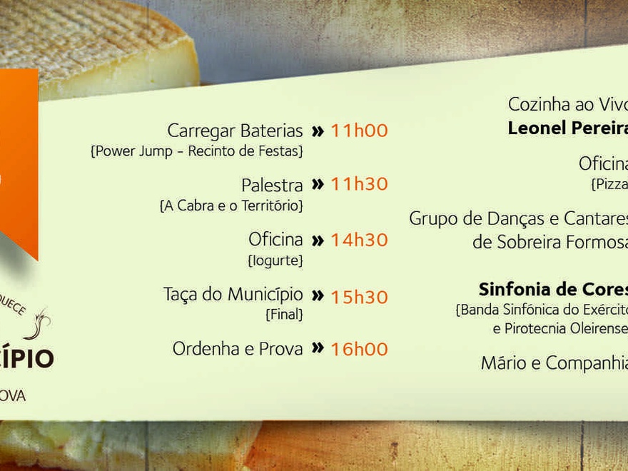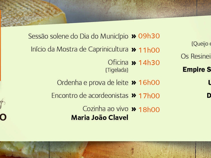 Na cozinha ao vivo, está confirmada a presença de Maria João Clavel, Leonel Pereira e Rui Alves. Além das oficinas que acentuarão diferentes utilizações do leite e queijo de cabra, haverá momentos para ordenha, um jogo de prova de diferentes leites e duas palestras sobre o tema escolhido para este ano.