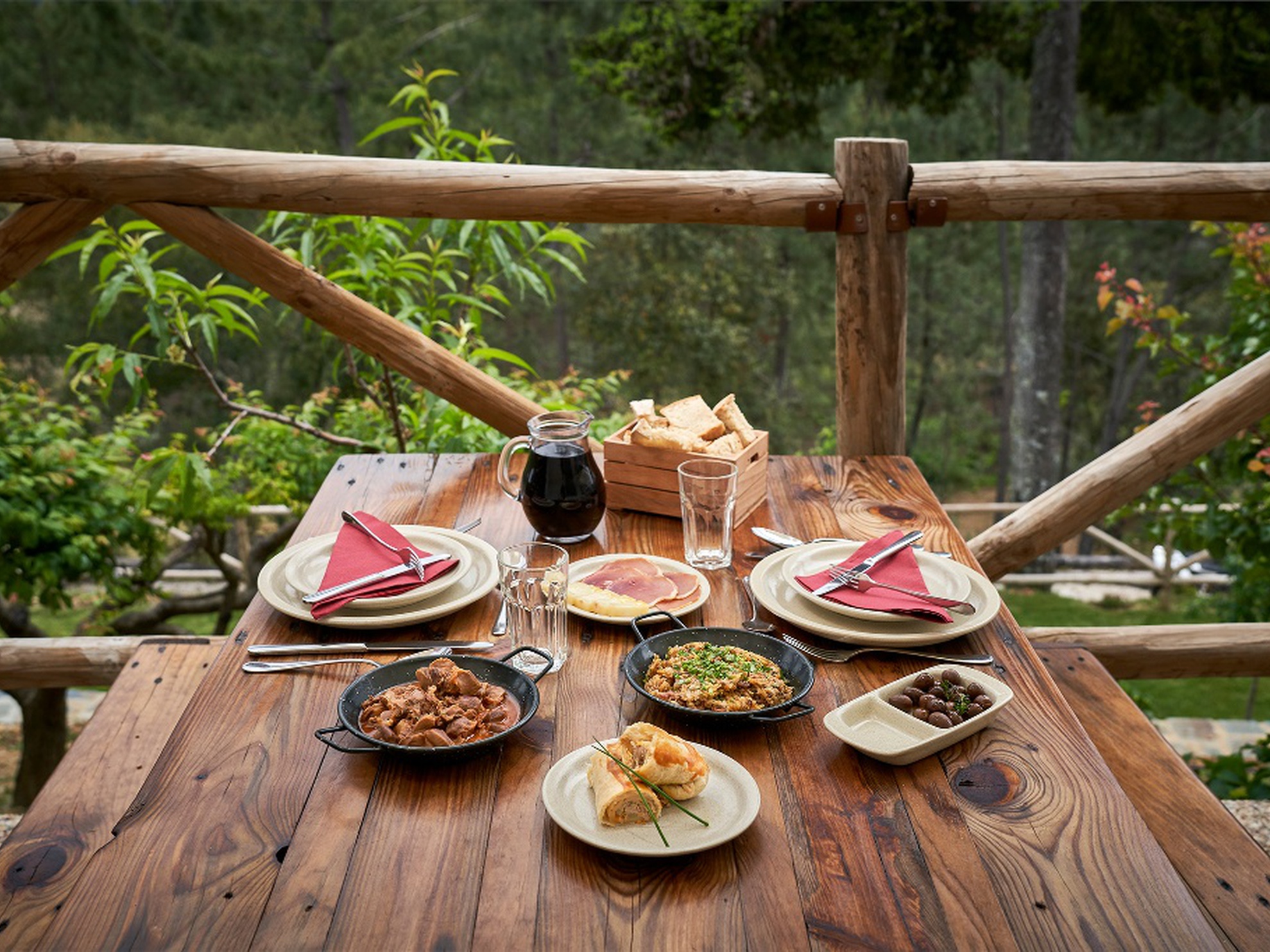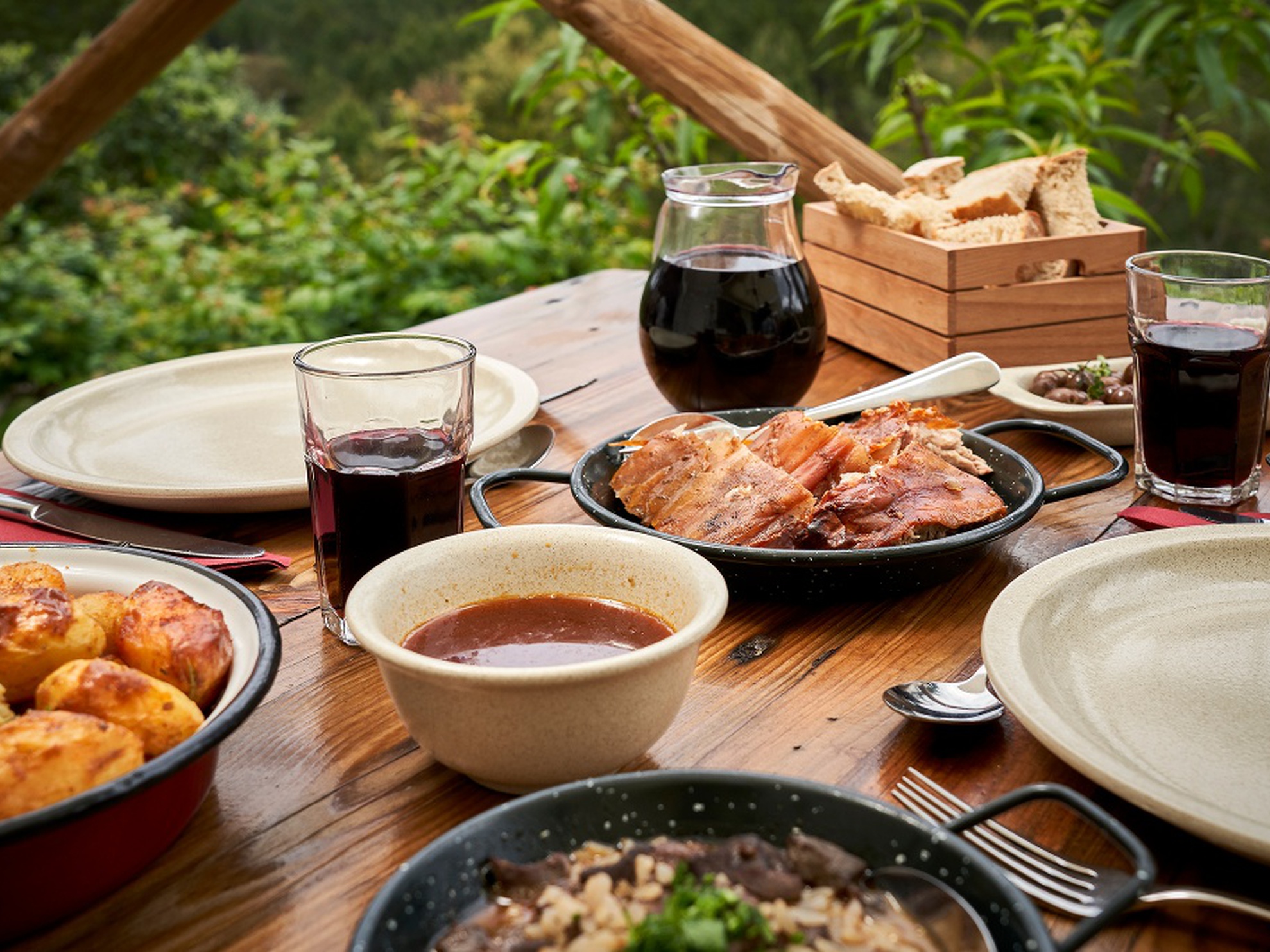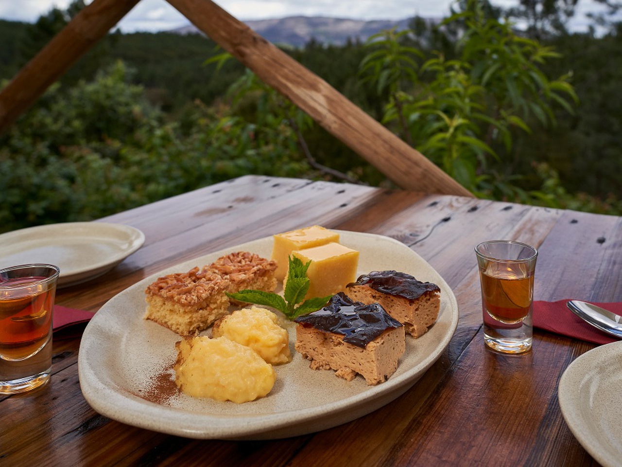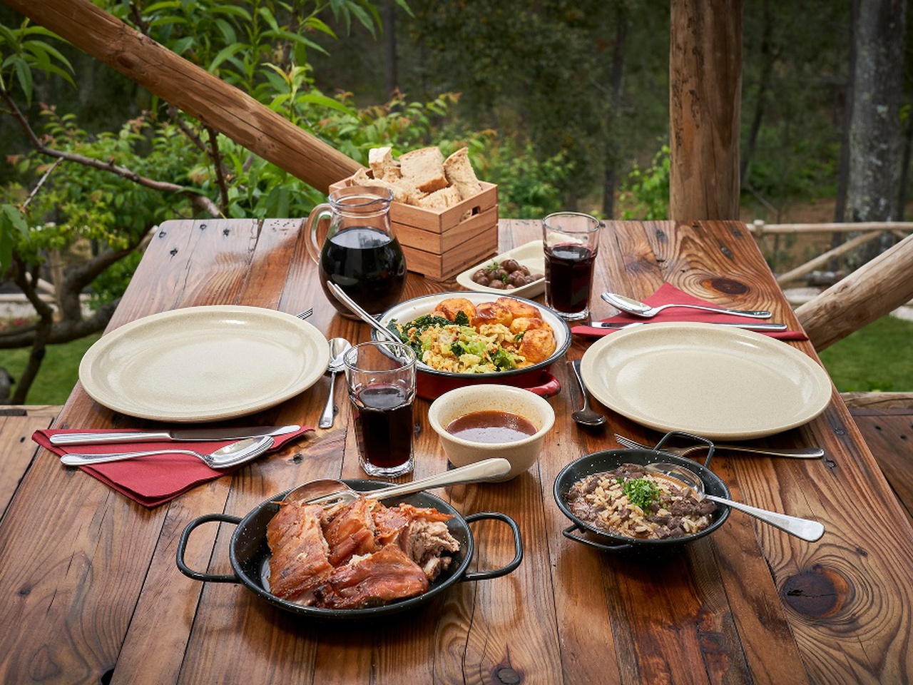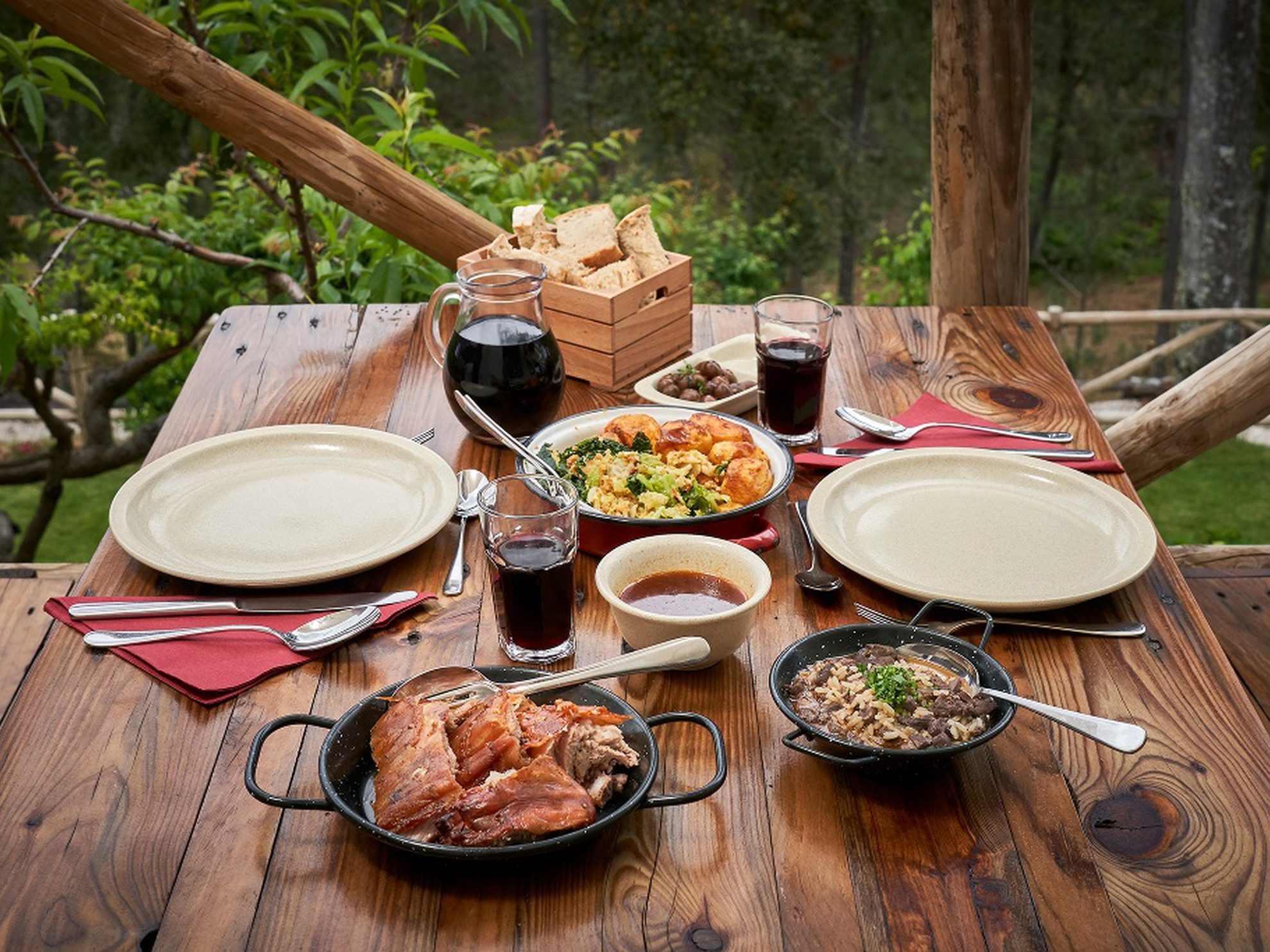 A especialidade da casa é o cabrito estonado à moda de Oleiros. Sendo um sabor único e próprio da região, é a estrela do Menu Espírito do Lugar criado pelos chefes André Ribeiro e Rodrigo Castelo. A sopa na panela de ferro, as migas de couve, o arroz de miúdos e a batata padeiro juntam-se ao cabrito e preparam o corpo para as deliciosas sobremesas regionais do dia.