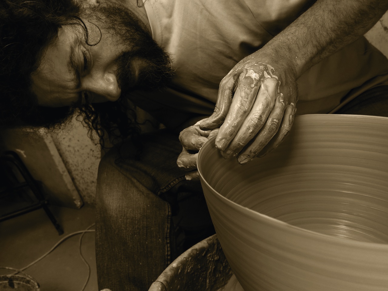 Miguel Neto é ceramista profissional, formado pelo Cencal, vive e trabalha nas Caldas da Rainha, onde abriu um atelier em parceria com a ceramista Paula Violante. Desde 1994, produz peças únicas de olaria em grés, com uma identidade muito própria, peças elegantes na sua forma e simplicidade. Conta com um vasto currículo de exposições individuais e coletivas. Em Água Musa, apresentou as taças “Pele de Água”. Para o projeto Agricultura Lusitana, criou, em parceria com Mafalda Fidalgo, as peças “Ladrilhos Contemplativos” e “Taça Alguidar”.