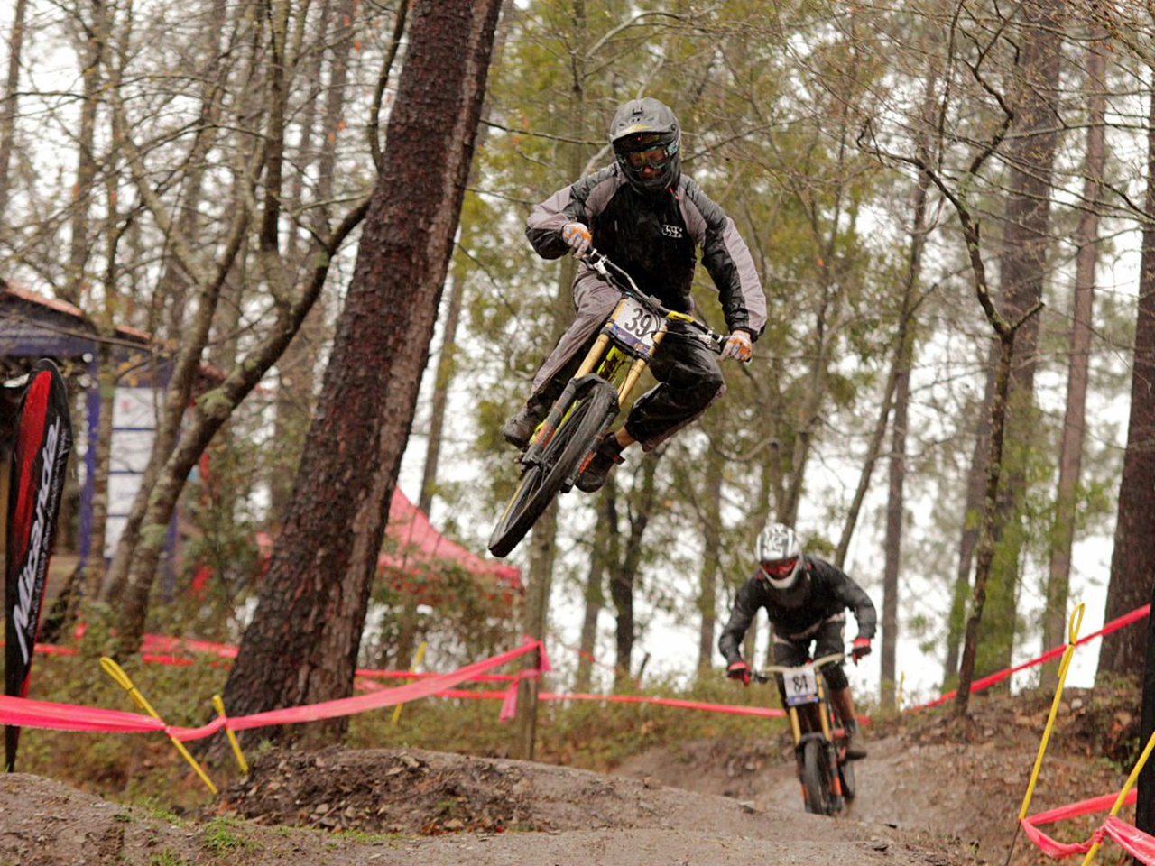Uma ideia já antes vincada por Pierre e Danger, os speakers de serviço. “A Lousã está de parabéns. É já um spot conhecido a nível mundial para a prática de Downhill, bem como de outros desportos”. Pierre é speaker há 20 anos e é com essa experiência que conta em cada prova. São notórias a energia e a paixão pela modalidade. Assim como a familiaridade que tem com os corredores. “Acompanho alguns dos atletas desde que eram cadetes”, diz. “Criam-se muitos laços e ficamos intimamente ligados à modalidade e às pessoas”, acrescenta. Um exemplo: “A Ana Martins [que, pouco depois desta conversa, se sagrou campeã europeia de Masters 35] foi minha madrinha de casamento há um mês”.