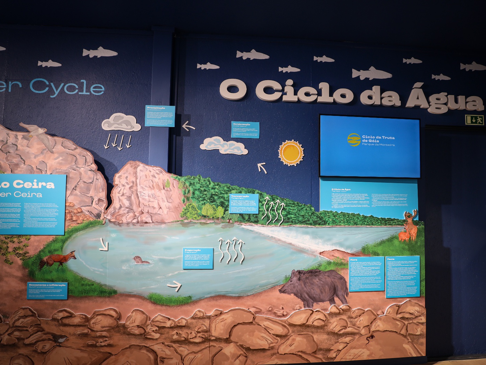 A informação está disponível em painéis informativos, vídeos descritivos, realidade virtual e respetivo plano pedagógico. Cumulativamente, a área exterior do espaço expositivo foi preparada para acolher atividades de interpretação ambiental. É dedicada particular atenção à truta fario, tendo sido construídos tanques destinados à criação desta espécie. Deste modo, procura-se revitalizar a densidade piscícola do Rio Sótão, um dos afluentes do Rio Ceira.