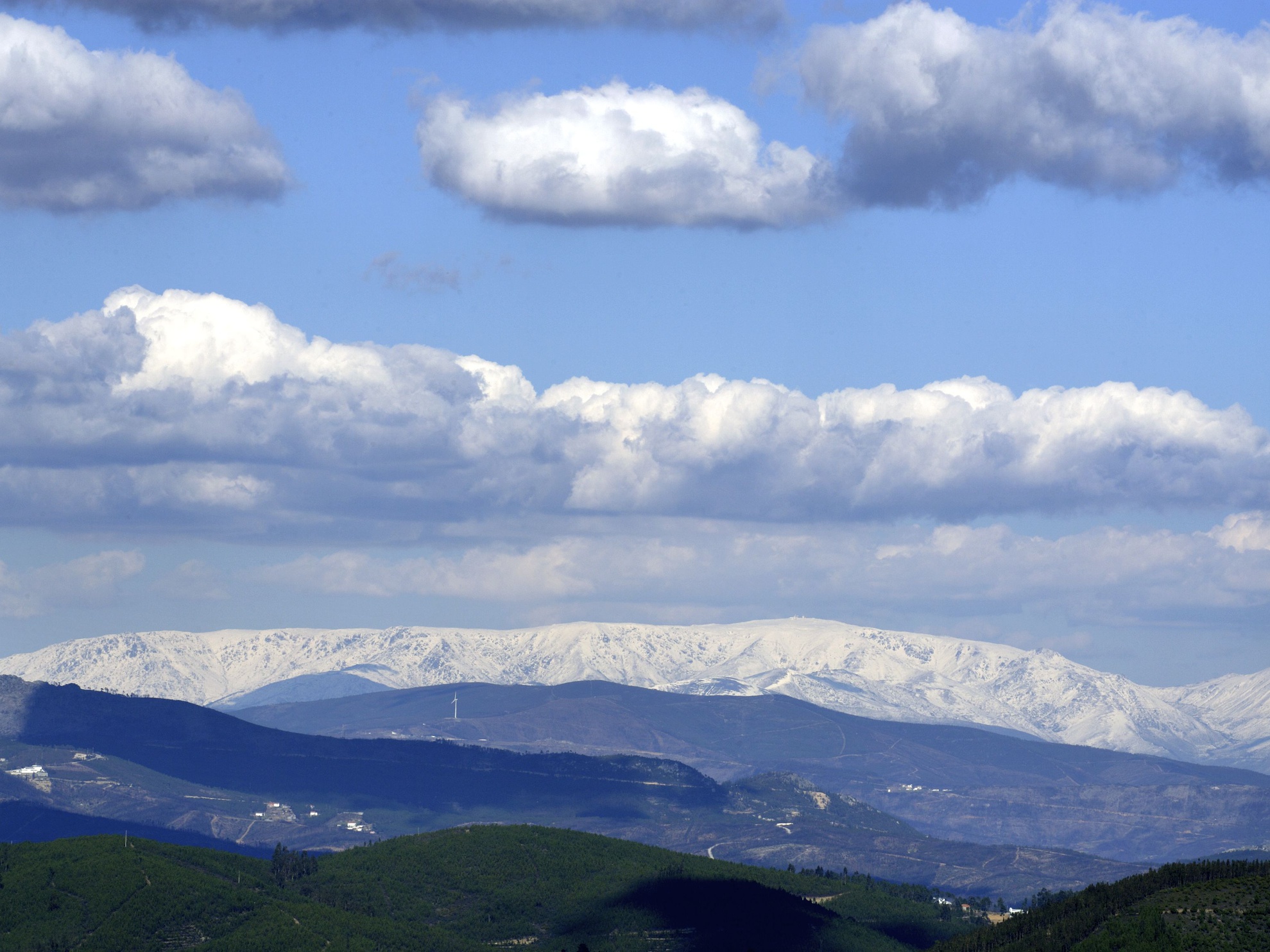 - do outro a Serra de Alvelos (1084 m), a Serra da Gardunha (1227 m) e a Serra do Muradal (915 m)
